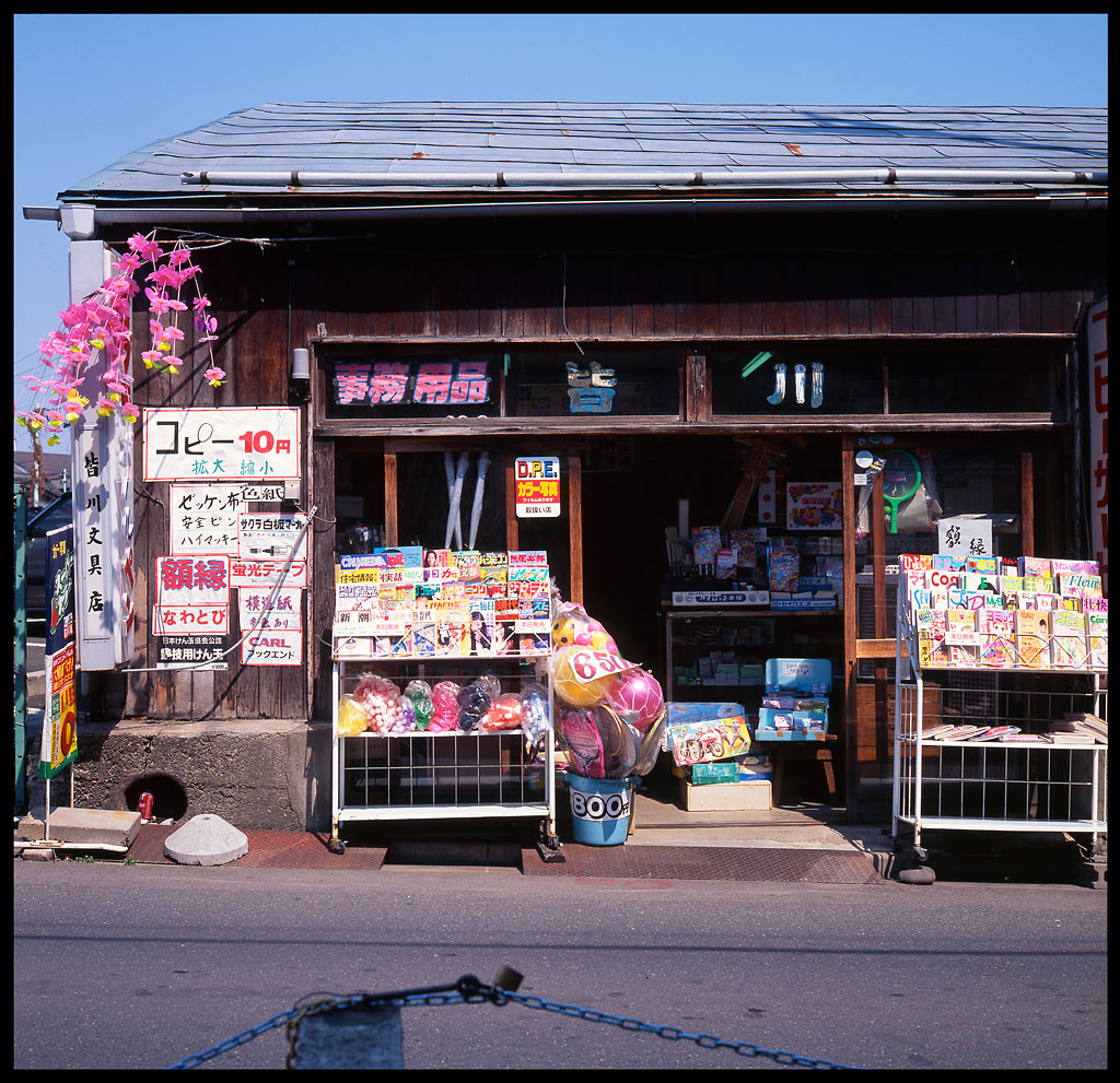 Rolleiflex 2.8F Zeiss Planar 80/2.8 RVP JR仙石線旧宮城野原駅と国道45号線をつなぐ小さな商店街。 宮城野原駅が移転してから随分たつが この昔なつかしい文具店は今でも建っているのだろうか。 ローライプラナーはシャープで軽量。散歩写真に最適ですね。 芳醇旨口のプラナーに対して 端麗辛口のクセノタールも気になる所です。 左下の「競技用けん玉」というのもちょっと気になります。 (写真はクリックで拡大します。)