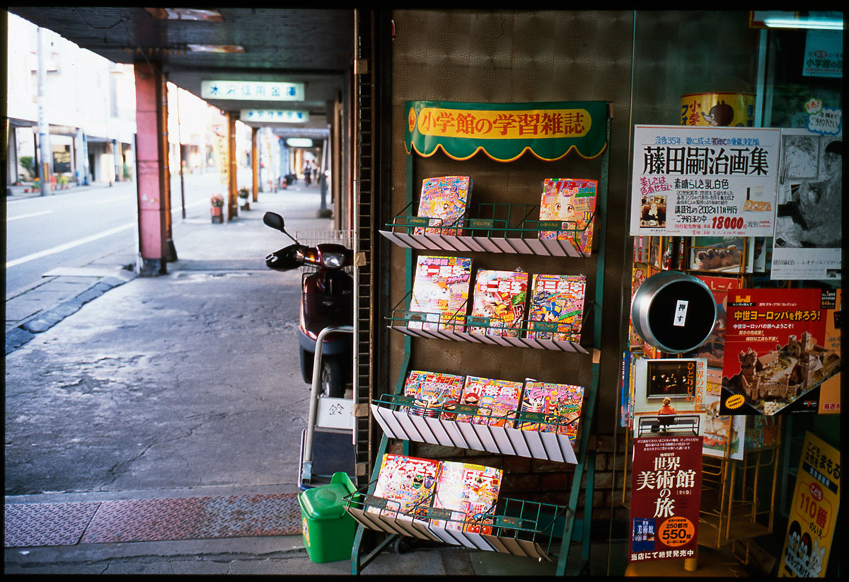Leica M5 Summicron 35/2 1st RDP III 熱帯雨林書店が巾をきかせたせいか 街の本屋がどんどん店を閉めているけど 商店街の本屋ってこのイメージだよね。 本屋独特のあの「匂い」はまだ記憶にあります。 ガラスドアの丸い取手(?)を引く抵抗感も一緒に。 水沢にて。