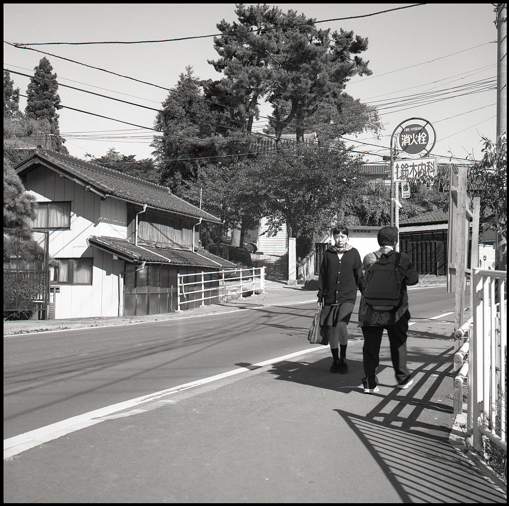 Rolleiflex 2.8F Planar 80/2.8 T-MAX 100 北仙台の仙山線の線路を渡って少し行った辺り。 右手には本山製作所の工場が広がっていました。 今にして思えば、この道は奥州街道ですね。 もう少し行くと堤焼きの登り釜があります。