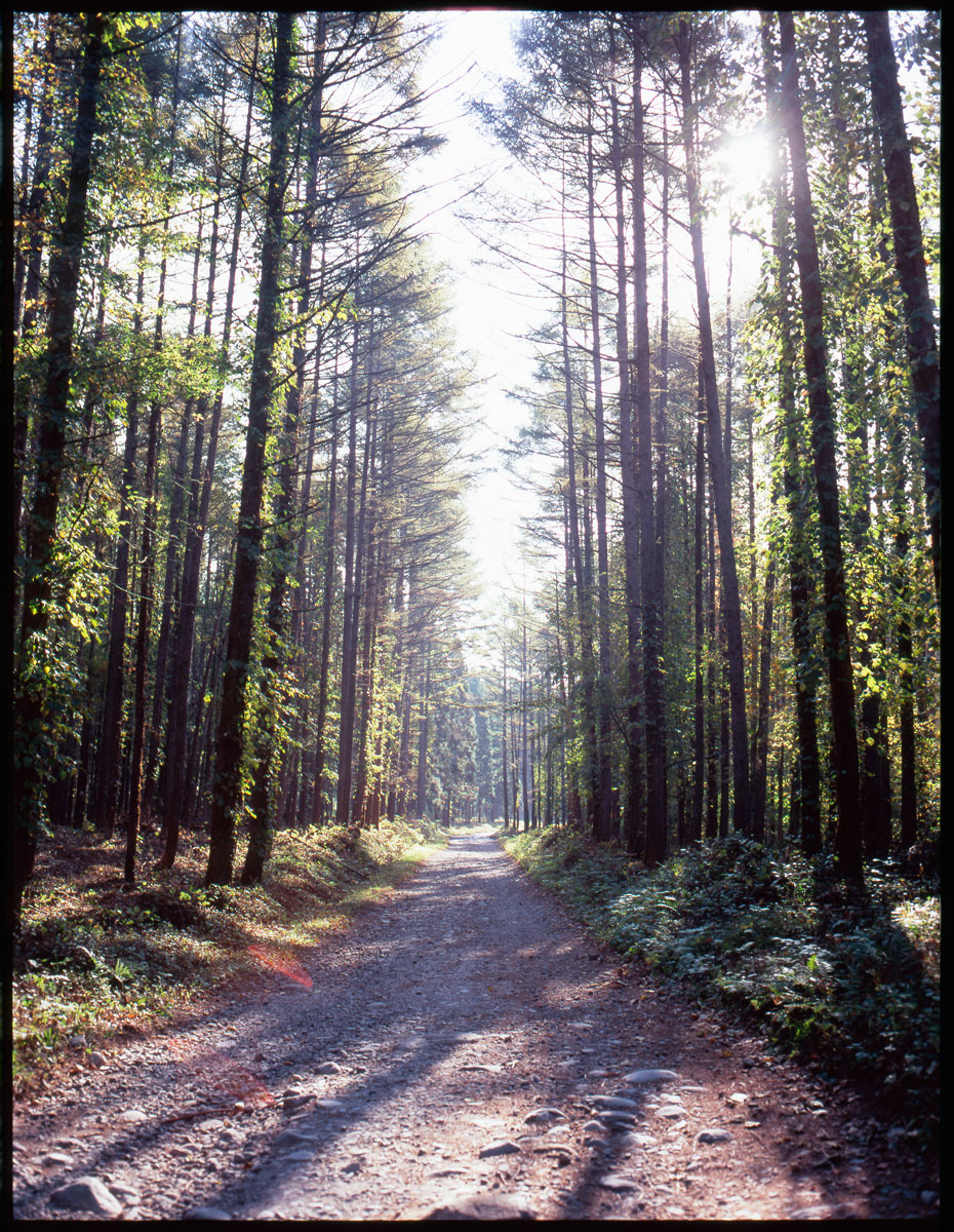Linhof Press70 Planar 80/2.8 RVP100 船形山の林道。 プラナー、逆光に弱いなんて言ってごめんなさい。 これだけ階調豊かな絵が撮れれば申し分ないです。 コマ収差なんて気にしない!(それも演出)