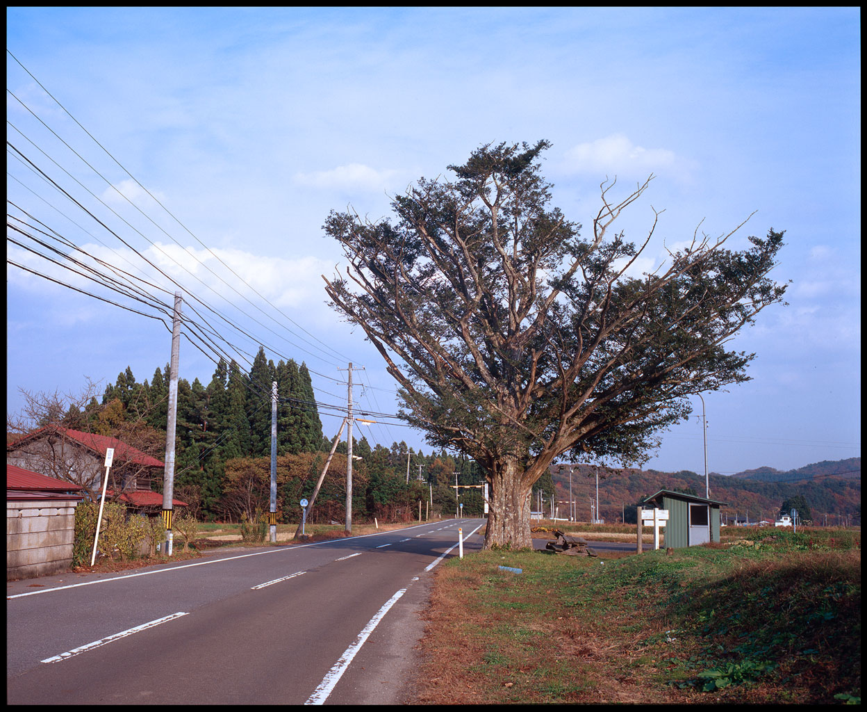 Linhof Press70 Zeiss Planar 80/2.8 E100VS 船形山の麓、沢渡集落に立つ「沢渡の大榧(カヤ)」。 その姿から「逆さ箒(ホウキ)」とも呼ばれる。 画面右奥に見えるのが「丸子杉」。 その昔、伊達藩が測量のために街道の要所々に植えたとも、 古木を賽の神、岐の神としたとも。 縄文時代からの集落跡があったり、山岳修験の名残りがあったり 御所山(船形山)〜七つ森〜泉ヶ岳周辺には古代ロマンがあふれています。 PR